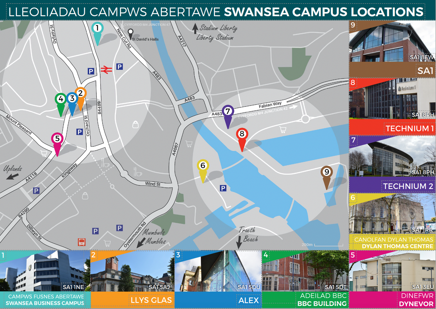 Swansea Waterfront, London, and Cardiff campuses